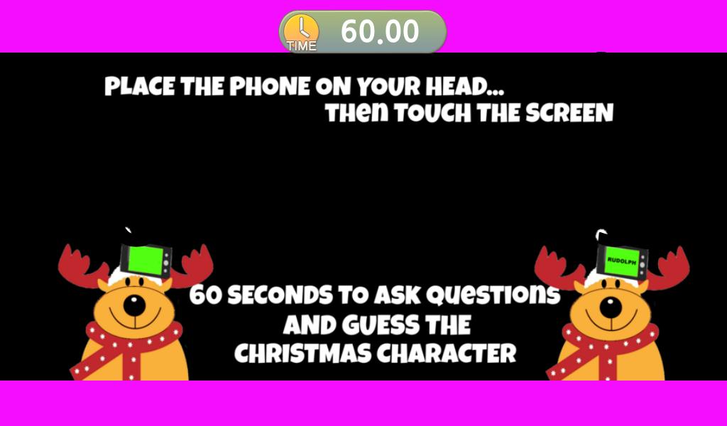 من السهل أن تلعب بشكل رائع لجميع الأعمار - الصغار والكبار! ما عليك سوى النقر فوق زر البدء في امسك جهازك على جبهتك للكشف عن شخصية عيد الميلاد لأصدقائك. 60 ثانية لطرح الأسئلة لتخمين أي شخصية عيد الميلاد أنت! لا يمكن لأصدقائك الإجابة بنعم أو لا ، لذا اختر أسئلتك بعناية.